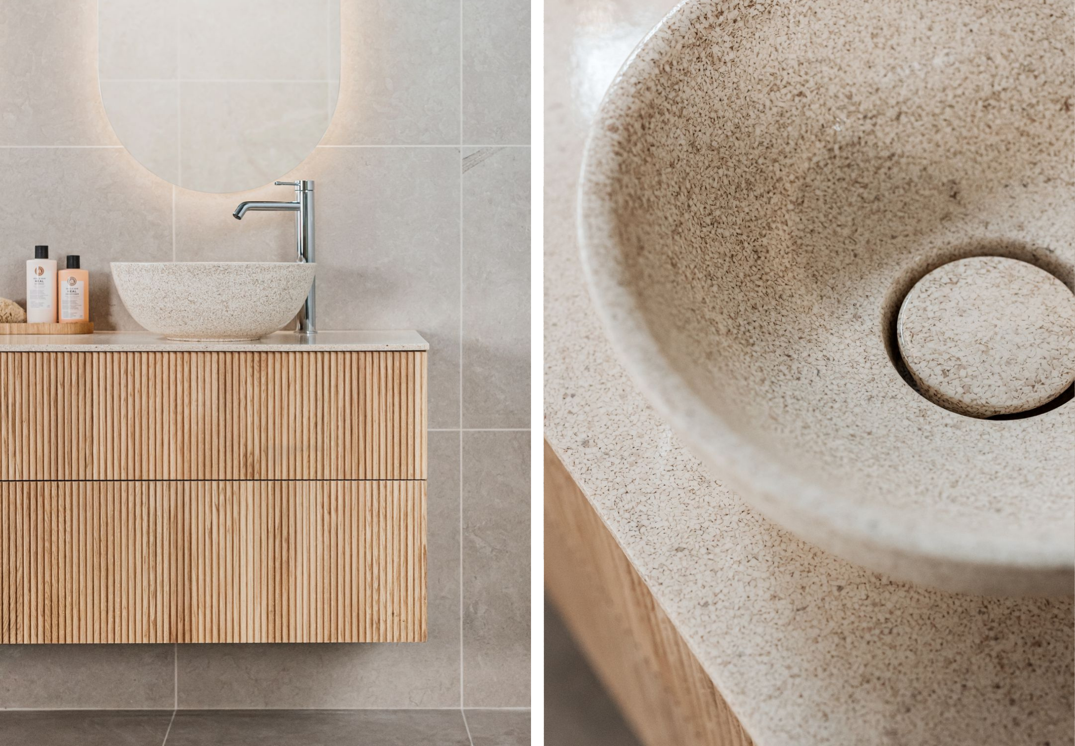 Woodio er verdens første 100 % vanntette trekompositt, et bærekraftig alternativ til keramikk og stein. Nå lanserer vi flere nyheter: benkeplasserte og integrerte servanter samt nye Woodio-knotter, med en semimatt overflate som fremhever materialets naturlige tekstur.