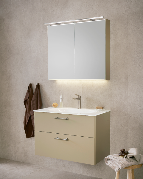 - Servantskapet har to myktlukkende og romslige skuffer Skuffebelysning og stikkontakt fås som tilvalg