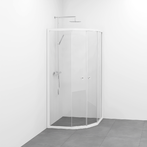 Dusjhjørnet Flow Semi har to praktiske skyvedører og egner seg derfor i baderom med begrenset plass. Skyvedørerne er vendbare, f.eks. kan 81x91 vendes til 91x81 cm. Fås med hvite eller matte profiler. Dører og sidevegger i klart glass eller ice. 6 mm herdet glass. Justerbare hjulfester i metall. Profilene er tilpasset for standard rørgjennomføring og kan suppleres med vinkelvegger og påbyggingsprofiler. Tett mot gulv. Høyde 190 cm. Kan måltilpasses i høyden. Les mer om