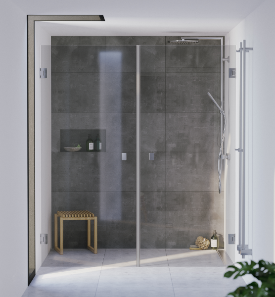 Den minimalistiske designen på Grace tiltaler mange i form og uttrykk, med vegghengte hengsler skaper den et luksuriøst baderom med store glassflater uten profiler. Grace Saloon er en luksuriøs dusjløsning for deg som ønsker det lille ekstra. Grace Saloon med 8 mm herdet glass med veggmonterte dørfester. Målbestilles fra 50-200 cm. Les mer om